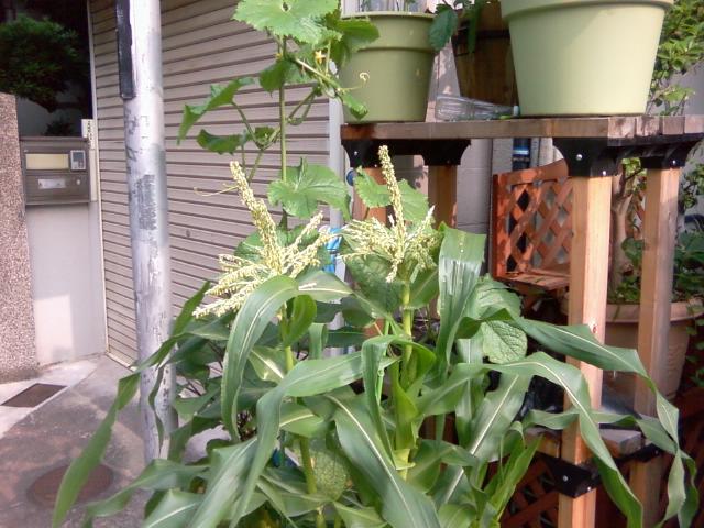 とうもろこしです。 大分大きくなってきました。 そろそろ食べごろなのかどうか不明です ----------------------