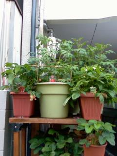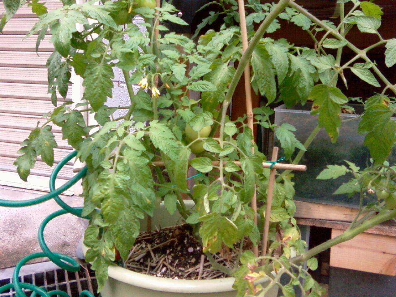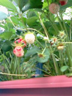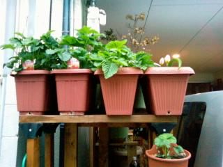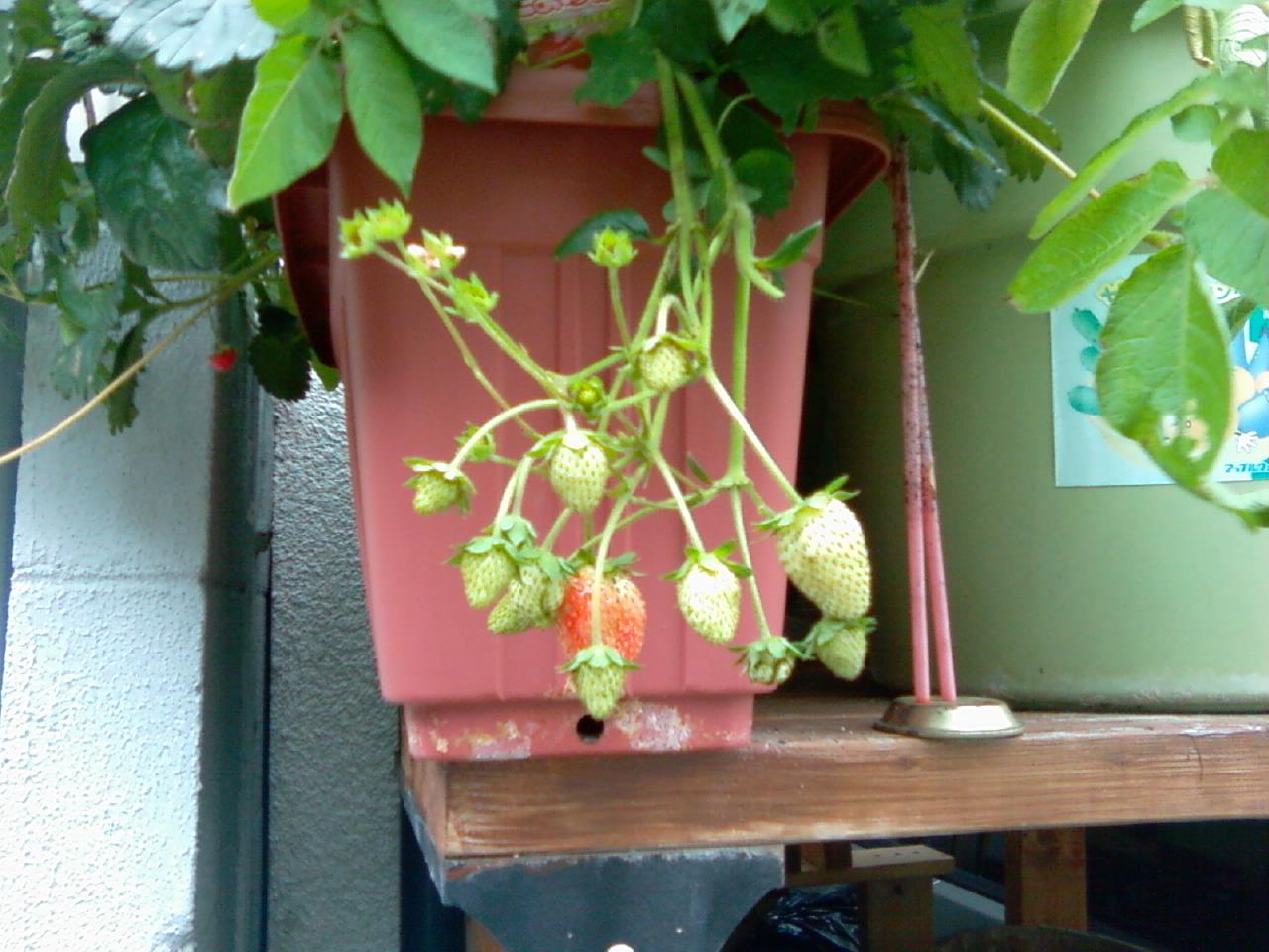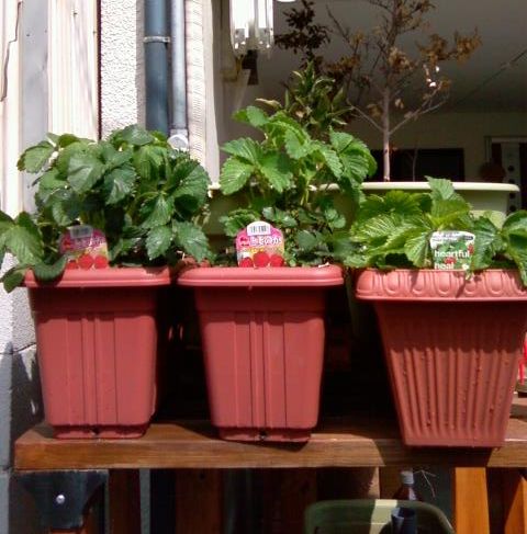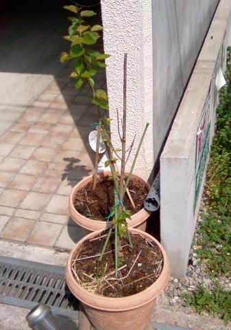 手前のさくらんぼは根元しか葉が出ていないので